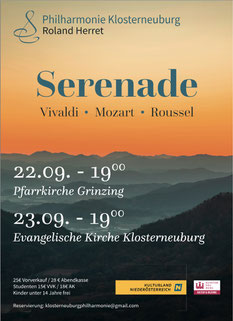 Die Philharmonie Klosterneuburg gab am 22. September in der Pfarrkirche Grinzing sowie am 23. September 2025 in der Evangelischen Pfarrkirche Klosterneuburg eine erfolgreiche 'Serenade'. Die Leitung lagt in bewährter Weise bei Roland Herret. Folgende Werke standen auf dem Programm: